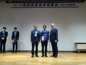 このたび、徳島大学脳神経外科同門の兼松先生が、第54回徳島医学会賞を受賞されました。受賞研究のタイトルは「徳島県におけるICTを利用した脳卒中患者搬送プロトコール」であり、地域医療の発展に大きく寄与する取り組みが高く評価