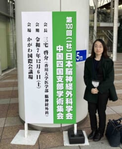 2025年12月6日(土)、高松にて第100回日本脳神経外科学会中国四国支部学術集会が開催されました。記念すべき第100回大会となった本会では、徳島大学からは多田里穂先生が発表しました。 演題は「淡蒼球視床路凝固術・淡蒼
