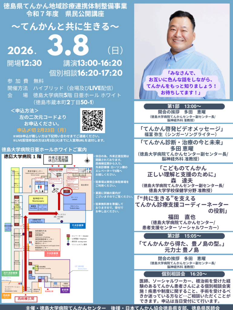 令和8年3月8日(日)にてんかん県民公開講座を行います。