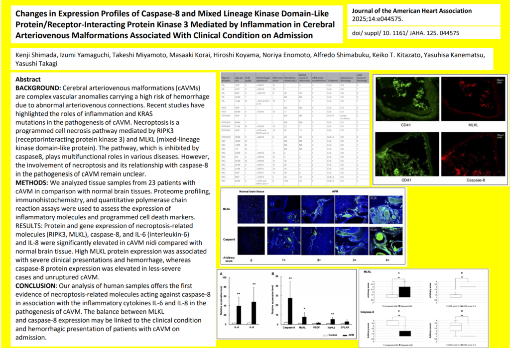 脳動静脈奇形(AVM)において、炎症が細胞死関連分子であるCaspase-8やMLKL/RIPK3の発現に与える影響を検討。