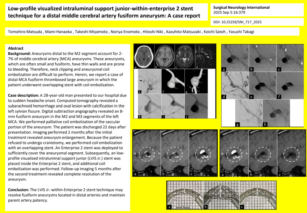 Low-profile visualized intraluminal support junior-within-enterprise 2 stent technique for a distal middle cerebral artery fusiform aneurysm: A case report – PMC